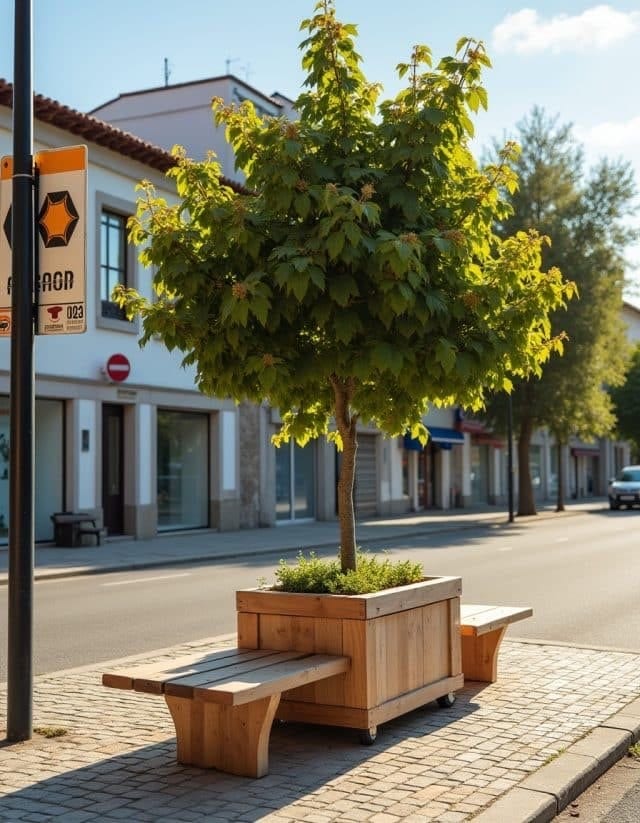 Spanning 14 municipalities, the Viseu Dão Lafões Intermunicipal Community has established an award-winning, on-demand transport service known as “Ir e Vir” (or “Comings and Goings” in English). It offers residents in rural areas an affordable and flexible transport option, allowing them to book taxi rides in advance at the cost of a standard bus ticket. As part of the region’s wider Sustainable Urban Mobility Strategy, the Community is now taking a step to integrate green infrastructure by creating 14 “green hubs” at key transit stops. These hubs will feature portable trees, seating areas, and biodiversity elements, transforming utilitarian spaces into cooler environments with much-needed shade. The goal? Reduce car dependency, increase urban-rural connectivity, and promote social interaction in an environment that blends mobility with nature.